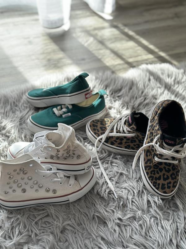 Всі кеди в ідеальному стані, без дірок, потертостей. Білі високі Venice, після прання жовтими плямами взялася тканина. Часта проблема з білими кедами з тканини, можливо хтось знає як виправити, тоді ☺️. Зелені та леопард по 200 грн. Білі 150 грн.