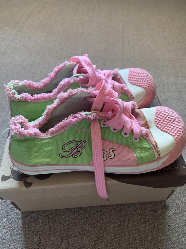 Зручні, яскраві, гарні кеди на дівчинку на фізкультуру Без дефектів. Довжина устілки 22см. Можливий обмін.