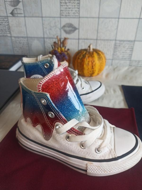 Какие же они одегезные!!!!От чего мой размер не было?))Куплела покрестника, малые(((((.Хорошо, что на распродаже брала. Возможно будут радовать другого детёныш и родителей.Вказанный 27размер, по стельке 17см, возможна до 18см.Такие яркие, что можно даже под праздничное наряды!!!!