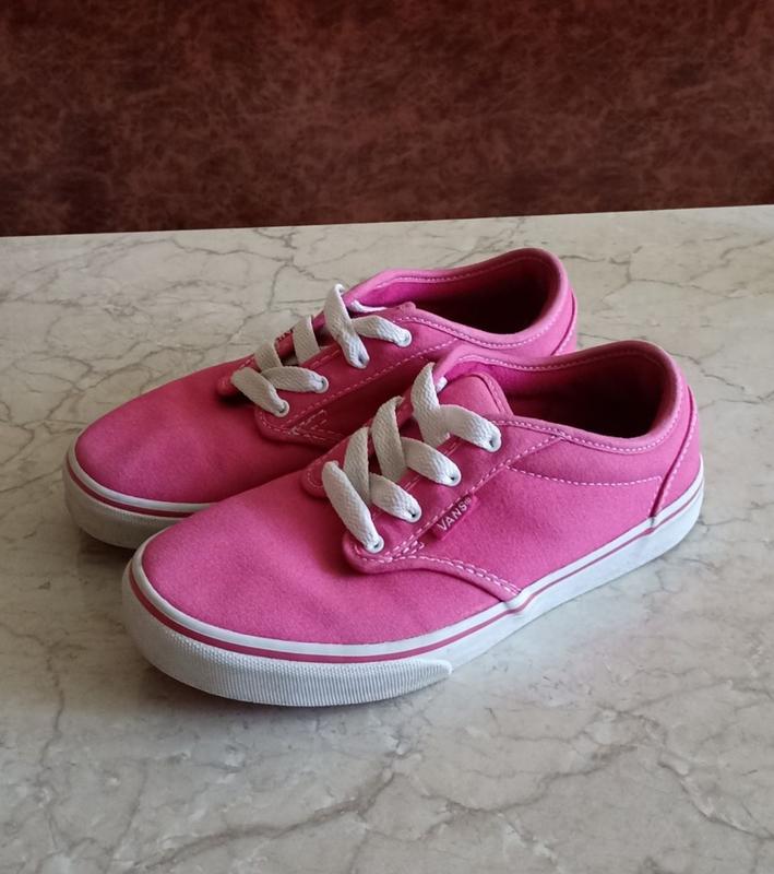 Стильные и яркие кеды для девочки Vans, 35 размер, стелька 22 см, розового цвета, на шнуровке. Внутри не тонкие как обычные кеды, чуточку утепленные. Хорошо подойдут ребенку в школу на физкультуру или на переутие зима. Хорошо смотрят на ножке, легкие и комфортные.