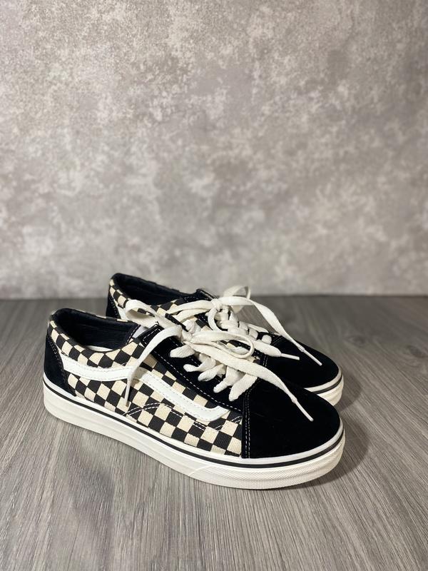 Нові чорні кеди у шашку, стильні. Не підійшли за розміром. Звертайтеся для уточнення деталей. Розмір: 40 Устілка - 25 см Підошва - 3 см.