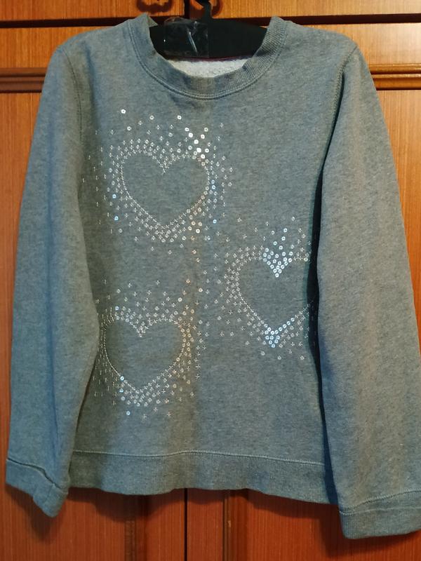 Декор сердечки с пайетками, 80%коттон,20%полиэстер, указан на рост 130см. 8-9лет, ширина кофты 40 рукав 46+манжеты 3см. плечи 29 длина 47.