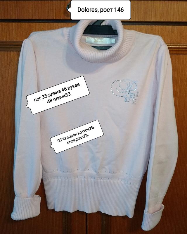 Нежнорозовый цвет и приятная к телу пряжа для девченки рост 146см .Длина свитера 46 ширина 35 рукав 43 +манжеты 5 плечи 33, тянется хорошо .93%соттон,7%спандехс, декор стразы.