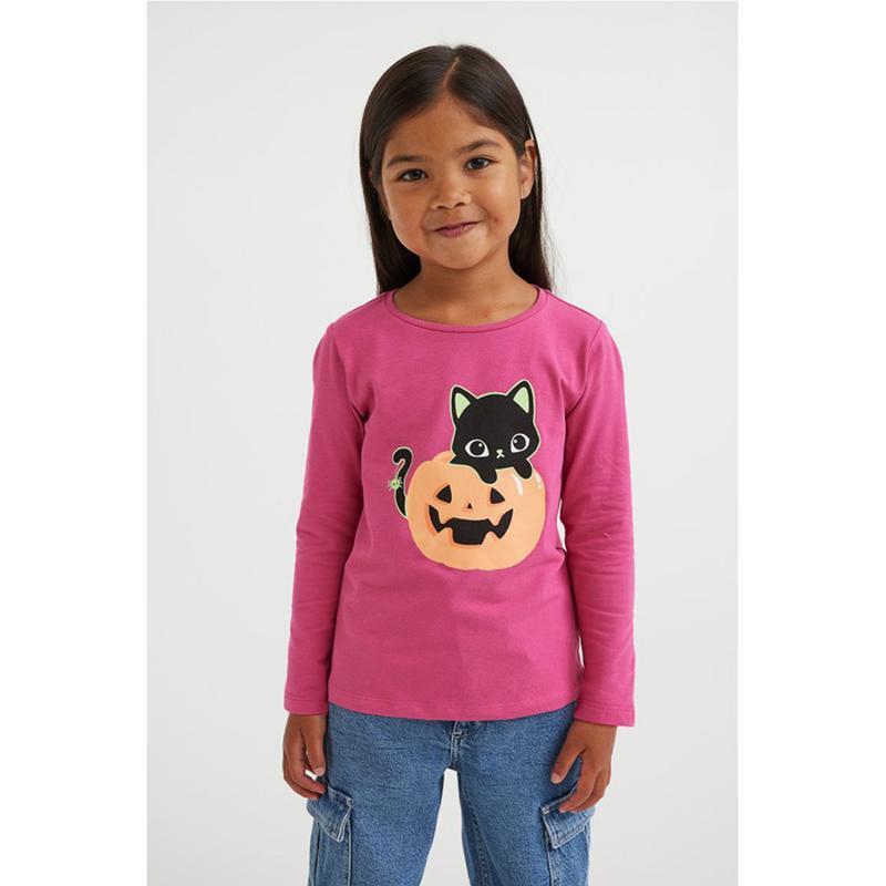 Дитяча кофта лонгслів на дівчинку. Лонгслів з довгим рукавом з м´якого бавовняного трикотажу з набивним малюнком. Рельєфна трикотажна гумка по горловині. H&M Світиться в темряві. 4-6 років - р.110/116: рукав від плеча 40, довжина 44, ПОГ 32
