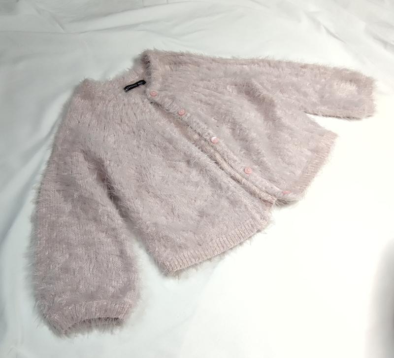 Теплий кардиган для дівчинки 2,5-3 років ° Зроблений з м'якого матеріалу ° Зпереду застібається на гудзики ° Краї кардигана з манжетами Розмір 98 см (2,5-3роки) --------- Реальні заміри *довжина 38см *ширина під руками 32см *довжина рукава від горловини 40,5см