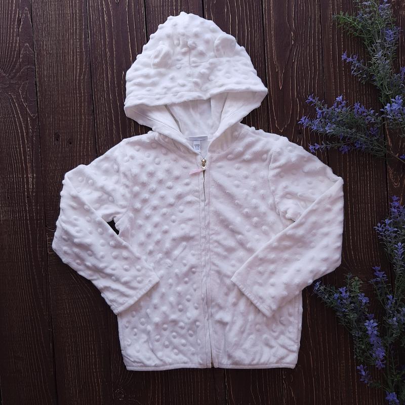 Кофтинка з капюшоном для дівчинки від OVS. Дуже м'якенька на дотик. В середині на бавовняній підкладці. В наявності розмір: 98 (30-36 міс.) Довжина від рукава - 40 см, ширина - 33 см, рукав - 37 см, плечі - 28 см.