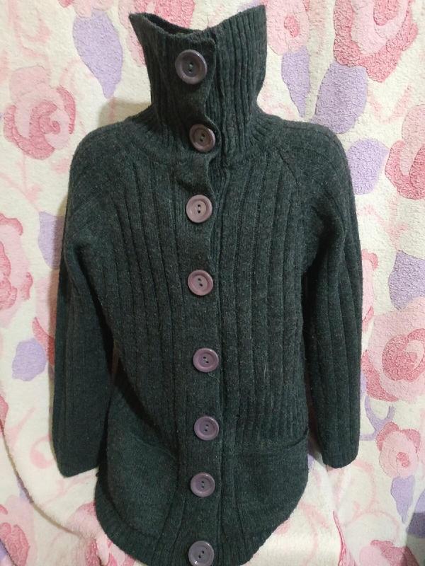 Теплющая шерстяная кофта, не колючая, на рост 128 см, рукав от шеи - 51 см, ширина - 38 см, длина - 55 см