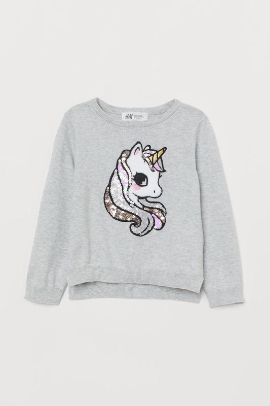 H&M Джемпер із бавовни, паєтки 🦄 🏷️110-116, 🏷️110-116, 🏷️110-116, 🏷️ 110-116 📌Довжина 39, плечі 26, рукав 40, груди 32 🛍️ОТПРАВЛЯЮ 2-РАЗА В ДЕНЬ 🚀НОВА і 🚜УКР 💵ПІСЛЯ ПОВНОЇ ОПЛАТИ 🍿ТОРГА НІ