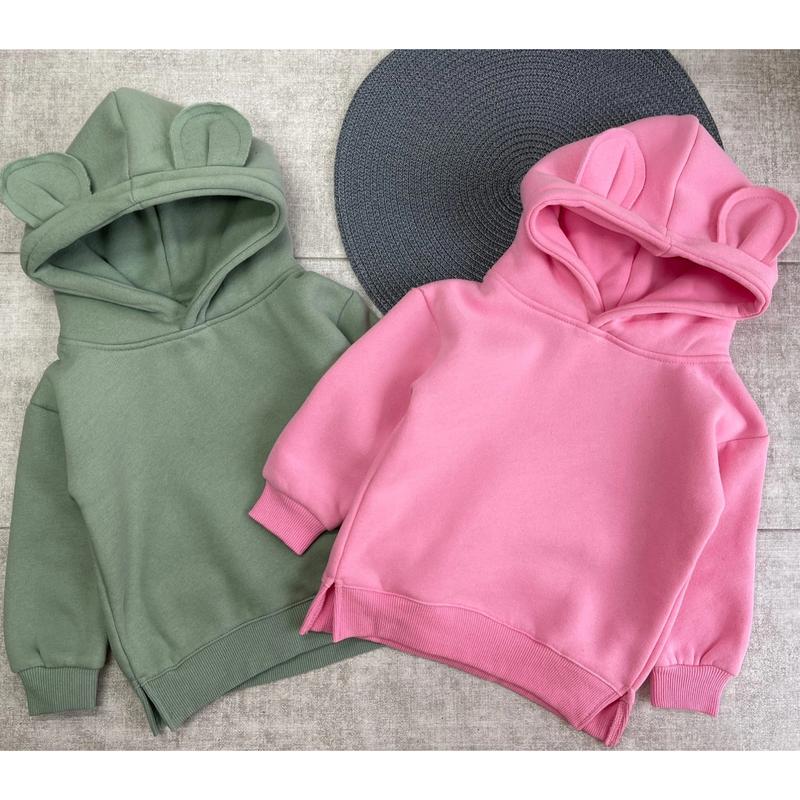 Стильне тепле худі 💚 Неймовірно виглядає😍 Чудово доповнює капюшон з вушками 💚 Люксова якість ✅ Подвійний теплющий капюшон✅ Тканина - щільна тринить на флісі 80 - довжина 33 см, пог 29 см, рукав 31 см (1 шт) 90-довжина 35 см, пог 30 см, рукав 33 см (1 шт) 100-довжина 38 см, пог 32 см, рукав 34 см (1 шт) 110-довжина 39 см, пог 35 см, рукав 37 см (2 шт) Замір рукава від горловини нс