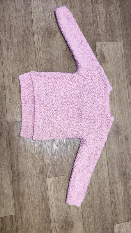 дуже м'який та теплий светр довжина по спинці 46 см довжина від плеча до низу 41 см зад подовжений напівобхват грудей 35 см довжина рукава від плеча 37см стан ідеальний колір світло-рожевий з невеликим блиском