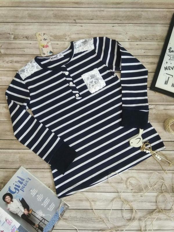 Полосатий реглан з ажурними вставками,супер якість. Виробник Туреччина, Wanex разм.122 дл.47см, шир.33см,рукав от пл.42см разм.128 дл.48см, шир.33см,рукав от пл.43см разм.140 дл.53см, шир.35см,рукав от пл.48см