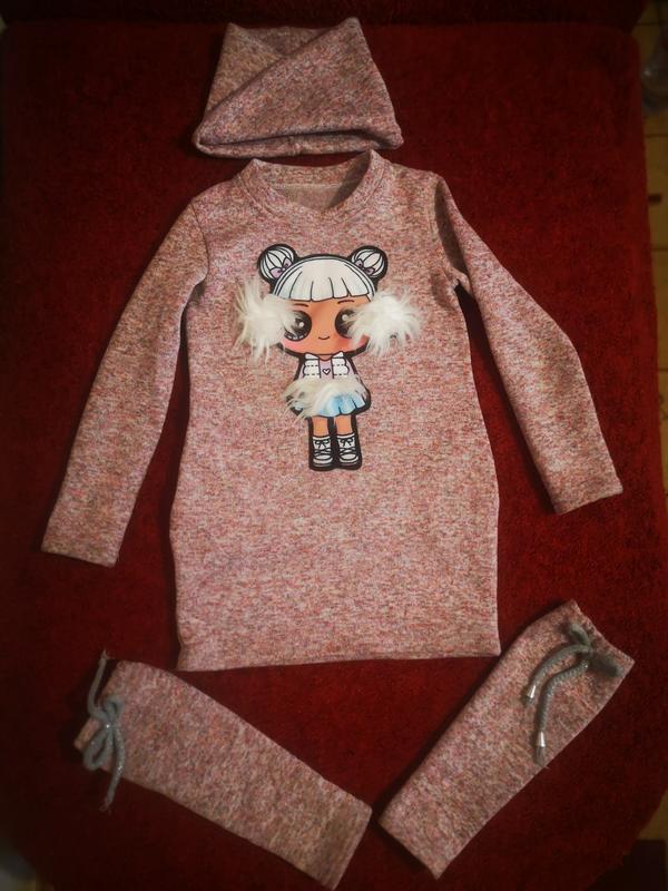 Класна туніка,комплект.В ідеальному стані.Розмір не вказано.Орієнтуйтесь на заміни(ми носили в садіку і ще в першому класі)