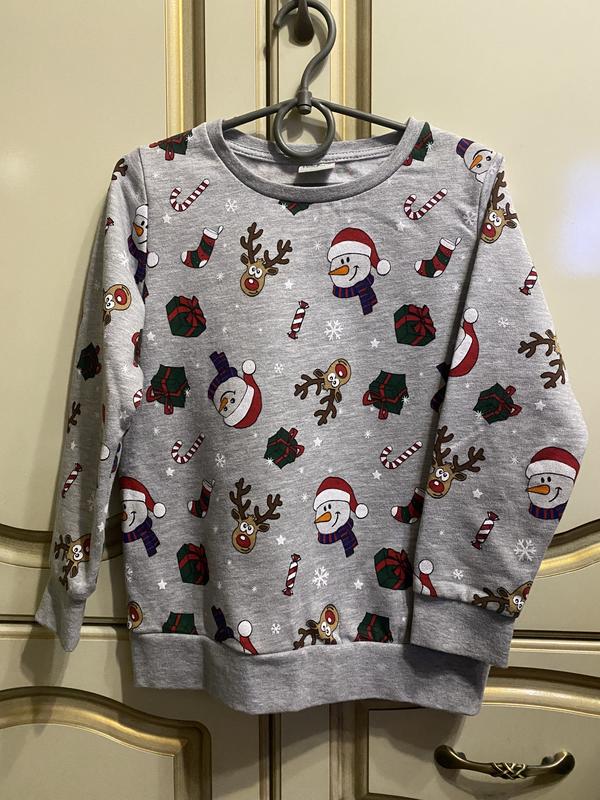 Утеплений світшот зі сніговиками. Всередині дуже приємний, м’який. Стан нового. Плям немає. На зріст 110-116 см. Заміри : довжина 46 см, довжина рукава 42 см.