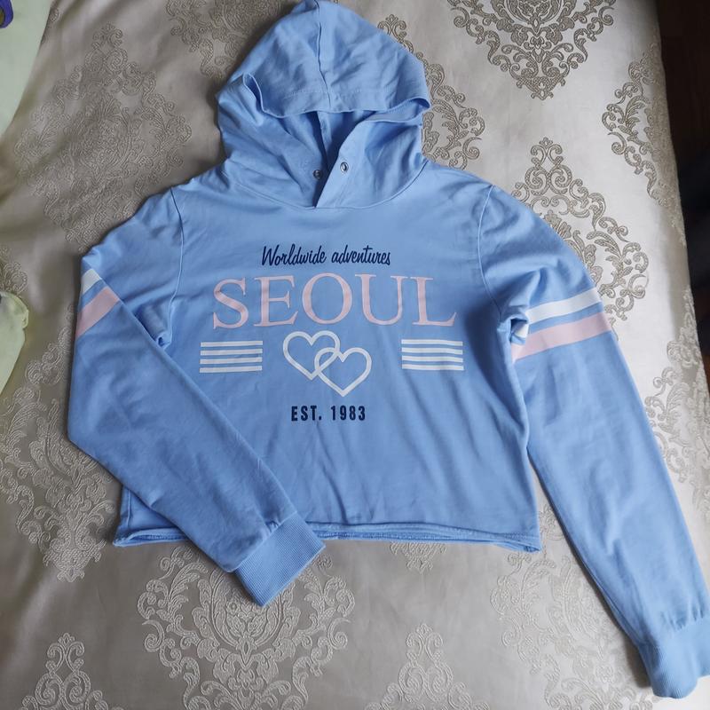Укорочене худі з капішоном. Склад -котон. Стан ідевльний . Звміри на фото.