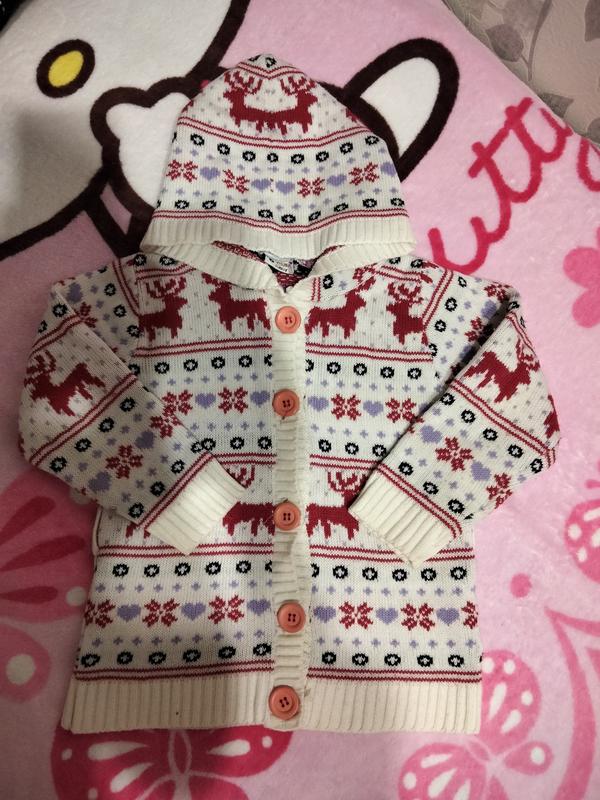 Тепленька кофта для дівчинки, в гарному стані. виміри : довжина 46 см, ширина - плечі 29 см, під пахвами 34см, снизу 35-36см, довжина рукава 38,5см.