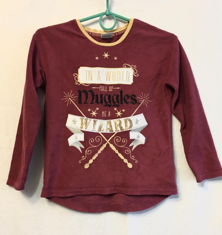 Кофта дитяча із серії фільмів про Harry Potter, дуже м‘яка і тепла, для дитини 8-9 років. Є нюанси - на рукавах сліди фарби, майже не помітно, можливо відійде за кілька праннів. Заміри: Довжина спереду - 49 см Довжина ззаду - 52 см Напівобхват грудей - 38 см Довжина рукава - 41 см Д1