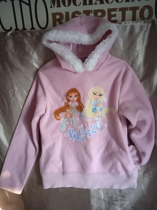Худи флиска розового цвета вышивка персонажи мутфильма BRATZ капюшон отороченный белоснежным мехом универсальная вещь носится и под куртку и под жилет а также самостоятельно есть карманы Длина -47 Длина рукава -46 ПОГ -37 ПОБ -35+ приятно тянется