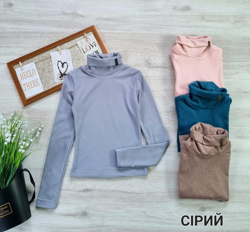 В НАЯВНОСТІ!!! Теплий гольф для дівчинки термотрикотаж приємний на дотик прикрашений шкіряною нашивочкою ГАРНА ЯКІСТЬ! СІРИЙ 134(1 шт)-довжина 43,пог 29,рукав 51 146(1 шт)-довжина 47,пог 32,рукав 56