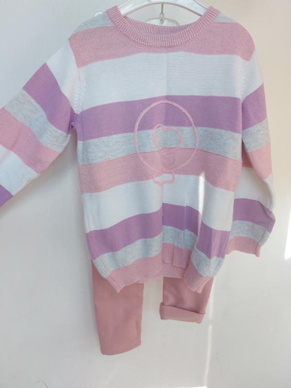 Свитер для девочки Ткань мелкая вязка Размер подойдёт 98-104 (пишите дам замеры) Состояние смотрите по фото дефектов в виде пятен и дыр нету совсем. Отправляю новой почтой 100% предоплата на карту