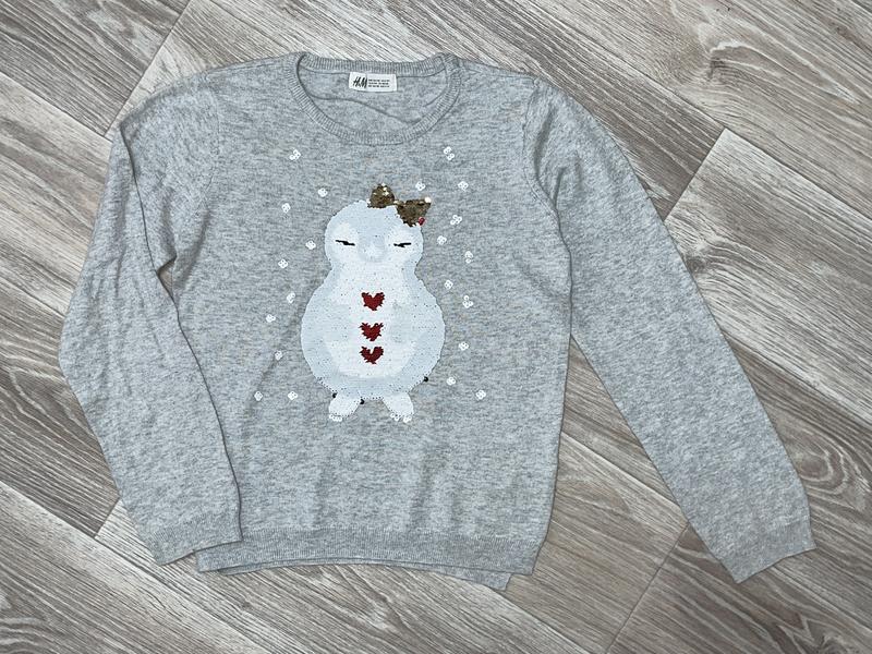 Трикотажный джемпер тонкой вязки Узор из пайеток перевертышей Состояние идеальное 🏷H&M 8-10 лет/134-140 Длина 50. ПОГ 40. Рукав 54