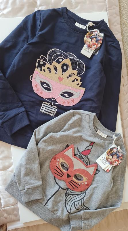 Світшот на баєчці. Цікава незвична модель .дуже добра якість, шикарний трикотаж, легка баечке всередині. маска знімається на кнопках, в комплекті мотузочці. Сірий 3-4 р. 104см- 290грн Є ще багато одягу цього бренду та інших- дивіться асортимент, також можу зробити підбірку на Ваш вік. Купуючи декілька речей, Ви економите на пересилці!💙💛