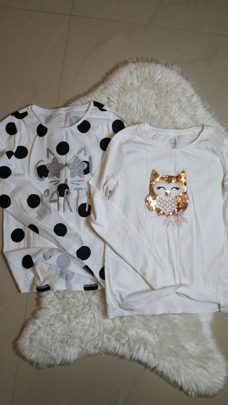 стан нових, лиш без бірки. Довжина білої 52, ширина 36, рукав від плеча 54. Довжина в горошок 52, ширина 36, рукав від плеча 51. Ціна одної 190