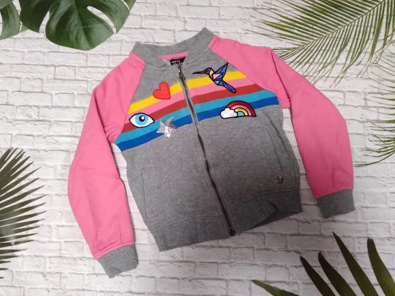 На этикетке указано на рост 122-128 см. Замеры в спокойном состоянии: длина по спинке 40 см, ПОГ 35 см, рукав от горла 49,5 см. 80% хлопок, 20% полиэстер. На рукавчике есть пятнышко, на фото показала, в остальном состояние хорошее, плотная.