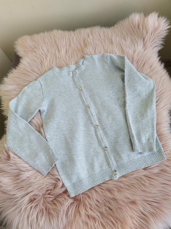 Кардиган на ґудзиках Next, розмір 122 см, стан дуже гарний, є нюанс (останнє фото). Має в складі 80% бавовни.