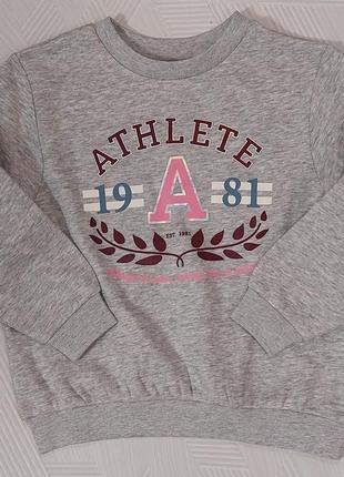 Тёплый, серый свитшот на девочку. Размер указан 110/116 (4-6 лет). Мерки: плечи 34 см, грудь 40 см , длина 44,5 см, рукав 39 см 60% коттон, 3% вискоза, 37% полиэстр.