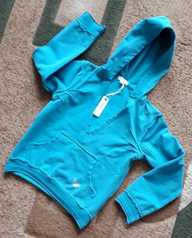 Стильний реглан з вирізом та капішоном для дівчинки. Красивий бірюзовий колір. Розмір 104. За дод.питаннями пишіть у пп.