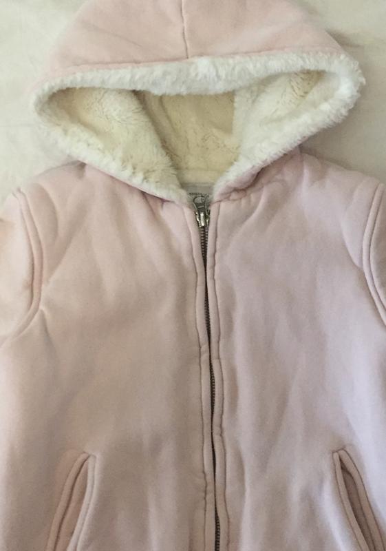 Очень тёплая кофта с капюшоном, внутри мех, застежка молния, есть карманчики, но есть один ньюанс , внизу возле змейки зашиты маленькие дырочки ( есть на фото) Замеры по запросу