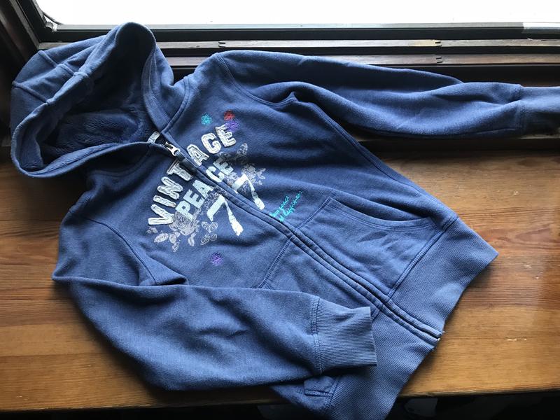 Кофта с капюшоном(капюшон на меху) красивый джинсовый цвет Длина 52 см рукав 52 см ог 39 см