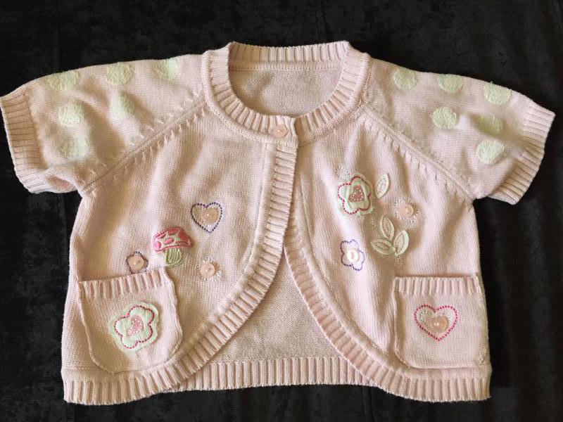 Нежно-розовая кофточка болерошка на одну пуговку, с украшениями вышивкой и пр, на 2-3 года