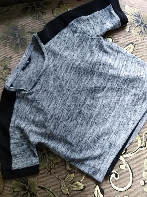 Под кофточкой чёрная майка. Вставки из ткани как на блузке. Ширина - 40 см. Длинна - 49 см. Ширина рука - 12 см. По плечам - 38 см.