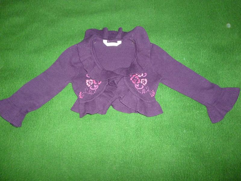 болеро.кофточка на 3-4 года,б\у в отличном состоянии,есть немного катышек по кофточке,цвет сливовый длина 26см,ширина по спинке 33см,рукав 33см + плечо 6см,плечи 25см