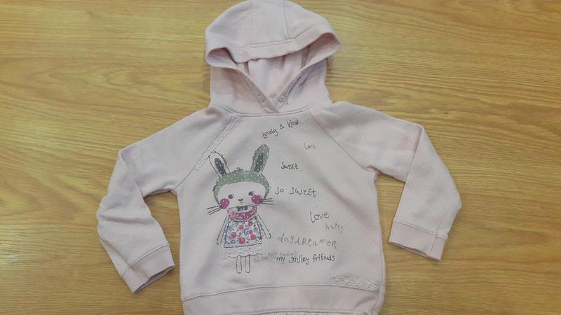 Реглан на девочку с капюшон, по бирке1.5-2 года. Носили активно, дефектов нет, чуть катышек. Длина 33 см Пог 30 см Рукав 35.5 см