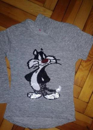 Батник,лонгслив,реглан с пайетками перевертыш для девочки7-12лет ,турция (отл. качество) .