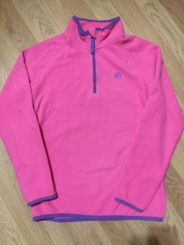 Фліска на 9-10 років Є такаж сама тільки фіолетового кольору( як ободок на рожевій)Кофтини тоненькі і теплі. Стан хороший без ньюансів Заміри довжина 54, пог 39, рукав реглан, тому міряю від шиї 59, внутрішня сторона 43