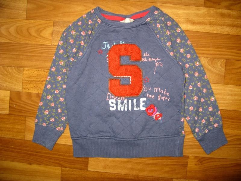 свитшот Next на 3-4 года (104). 100% хлопок, перед - двойная ткань, спинка петельчатая. Дл от плеча-40 см, ПОГ-33 см, рукав от горла-40,5 см. Состояние хорошее, немного ушел цвет- 65 грн