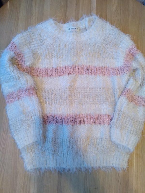 Продам світер ls waikiki в ідеальному стані. Матеріал "травка" з металізованими нитками. Розмір 4-5 років, 104-110 см. Ззаду застібається на три гудзика. За необхідності надам заміри.