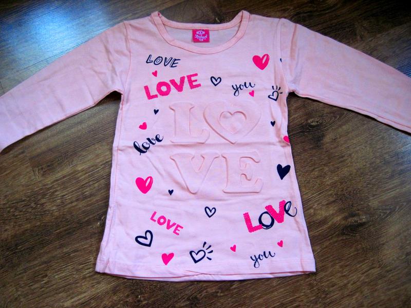 Ошатний і стильний реглан на дівчинку, опуклі літери. Колір — персик. Чудова якість, 100% бавовна! Країна-виробник —Туреччина! В наявності: 4/5 — проданий 5/6 — проданий 6/7 (зріст 122 см) — довжина 45,6 см, НОГ 29,5 см, рукав 38,5 см 7/8 — проданий Відсилання Нової й Укр. поштою. Вдалих вам покупок!