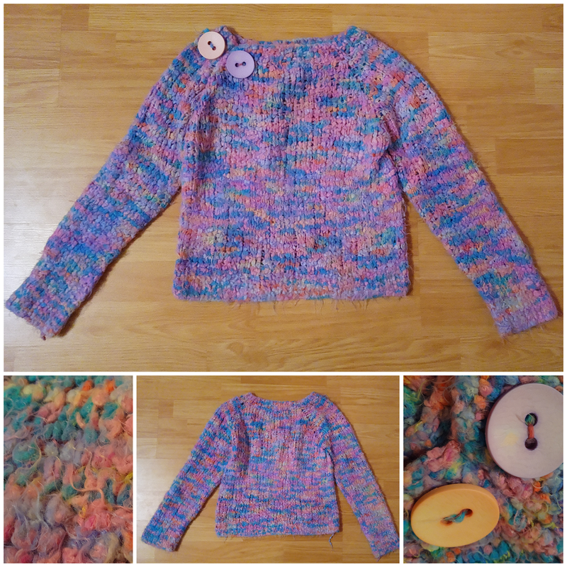 Різнокольорова кофта для дівчинки 150-165 см. Оздоблена двома великими гудзикам. Ручна робота. Заміри зроблю.