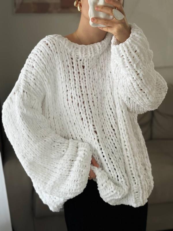 Базовый свитер – теплый и уютный, обладает невероятной нежностью и мягкостью. Вязаный вручную. Классический, вневременной дизайн, ничего лишнего, вы легко сможете вписать его в свой гардероб. Фасон oversize поможет оставаться всегда в расслабленном состоянии, чувствовать комфорт и непринужденность. Пряжа очень мягкая и не колется, является гипоаллергенной. В нашей размерной сетке два размера oversize: 1 размер на рост до 170см, подойдет на XS, S, M 2 размер на рост от 170-178см подойдет на M, L Размер от XL совмещаяся. Если ваш рост выше 178см или ваш размер L, а рост 157см или любые другие комбинации, просто пишите нам, мы проконсультируем.