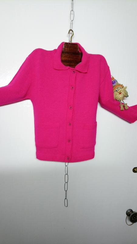 Эта яркая весёлая кофточка понравится Вашему ребёнку. Отделочная вязка на воротнике, планке манжетах, карманах Украшает кофточку Дл.из - 43,плечи-37см, рукав - 43 Пог - 38,низ - 36,5