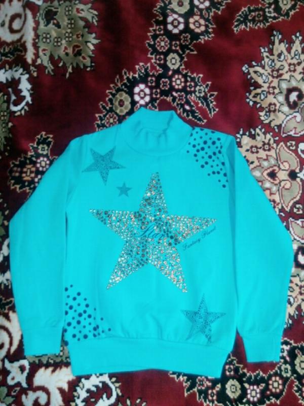 Новий.Не підійшов розмір. Довжина 42см Ширина 30см.Рукав 40см. Пише на ріст 122см,але маломірить.Орієнтуйтесь по замірах.