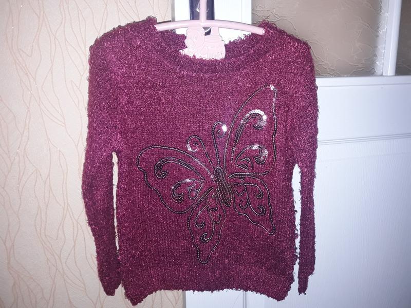 Пушистый теплый свитерок девочке по бирке на 4-5 лет украшен пайетками, очень красивый и нарядный в реальности.В идеальном состоянии
