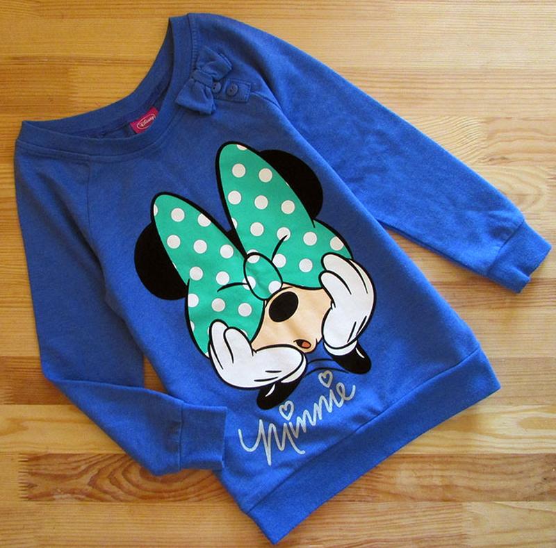 Очень классный свитшот disney 5-6 лет,цвет электрик,ушки у Минни бархатные,новый . -длина рукава от шеи-44,5см -ширина-33см -длина от плеча-49см