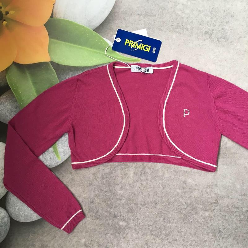 Красивое болеро для маленькой модницы на возраст 12 лет, на рост 152 см., от известного итальянского бренда Primigi. Болеро сшито из качественной, приятной на ощупь ткани. Болеро представляет собой оригинальный укороченный свитер с длинными рукавами, в прохладную погоду оно дополнит любое платье и согреет вашу принцессу. В нем ребёнок будет очень комфортно. Состав: 68% Вискоза; 29% полиакрил; 3% элостан Замеры: длина 22 см.; рукав 47 см.; плече 7 см.; Сделано в Италии