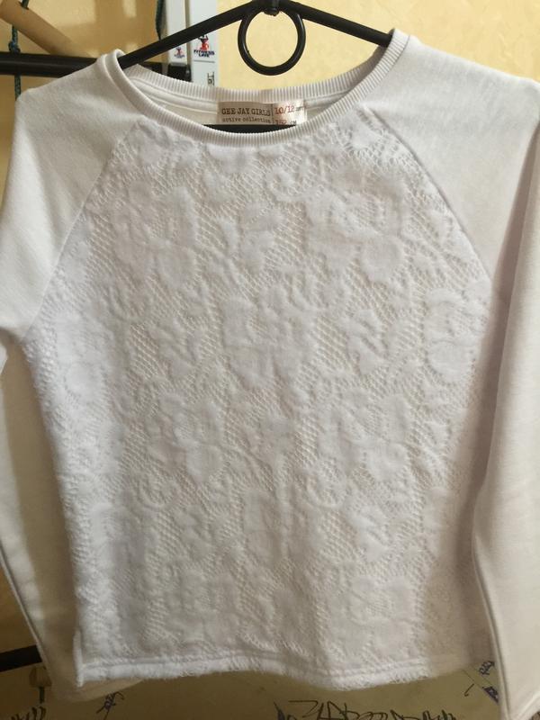 Белоснежный тёплый лонгслив на девочку, спереди гипюр, можно в школу, новый без бирки