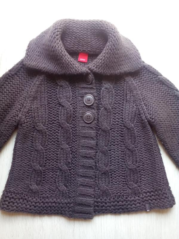 Продам стильную кофточку марки Esprit в очень хорошем состоянии на 4-5 лет.Состав:85% акрил,15% шерсть.Сделана в Германии.Интересный фасон,расширяется к низу.Застегивается на 3 пуговицы.Цвет коричневый,но не яркий,а скорее коричнево-серый. Замеры:длина по спинке-40 см,ПОГ-37-39 см,длина рукава от горла-50 см. Цена-90 грн.Возврата нет.Перешлю Укрпочтой или Новой почтой.